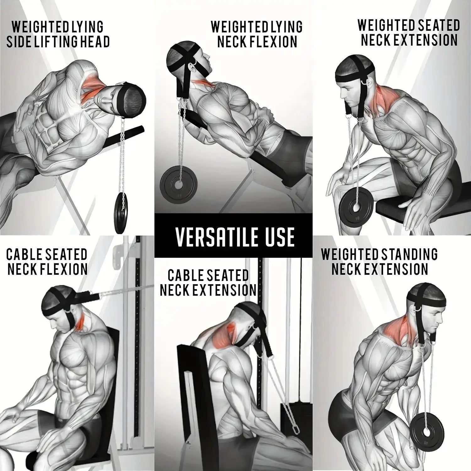 Feature 4: Comfortable Balance And Fit: This neck weight harness and muscle strengthening strap is properly balanced to ensure it holds weight safely in the middle without pulling to either side, ensuring safer more effective movements.